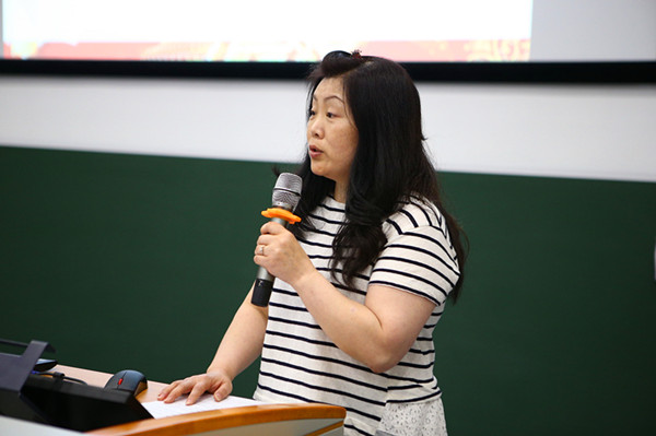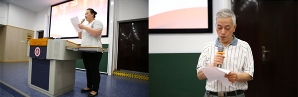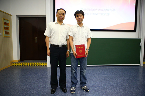 戴立益副校长为后勤先进基层党组织颁奖 吴燕华同志和徐庆尧同志作为优秀共产党员代表进行发言,他们结合自己的工作和生活实际,阐述了如何在后勤服务工作中以党员的标准要求自己,践行“两学一做”精神,更好地服务师生。他们表示要充分珍惜党组织赋予的荣誉,要将其当作不断迈向新目标的动力,在平凡岗位践行党员职责。