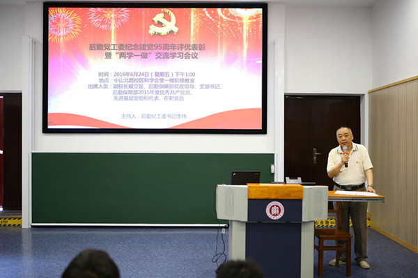 2016年6月24日,后勤保障部纪念建党95周年“七一”表彰大会暨“两学一做”交流学习会在中北校区科学会堂一楼阶梯教室举办。副校长戴立益、后勤保障部全体党员参加了本次活动。大会由纪工委书记李伟同志主持。本次会议对后勤保障部优秀共产党员及先进基层党组织进行了表彰,各支部书记进行了“两学一做”学习教育汇报交流,全体党员重温了入党誓词。