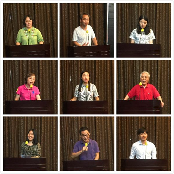 获奖代表发言 然后,各党支部书记或支委代表李雯、彭呈军、孙婷、袁芳、李永梅、王世云先后介绍了各支部开展“两学一做”学习教育所进行的主要工作,包括开展专题学习、听取专题报告、进行交流讨论、组织参观接受教育等,以及学习党章党规、重温入党初心,学习系列讲话、领会精髓要义,创新党课和组织生活形式、有效开展学习教育,采用“七问”等方式学习、建立分享交流微信群,老同志讲述出版社艰苦创业历史和精神、举办专题学习交流会等特色活动,并总结了各自支部所获得的成效、经验和体会,反思了不足。此外,普通党员代表曹祖红、校党代会代表卜于骏也结合自身实际,交流了学习效果和心得体会。民主党派和无党派人士代表王京发言认为,出版社党工委认真开展“两学一做”学习教育成效明显,并强调了他作为党外人士所感受到的党的开放、包容与自信,赞扬了党对基层民主的重视与落实,同时还向所有党员同志表达了敬意。