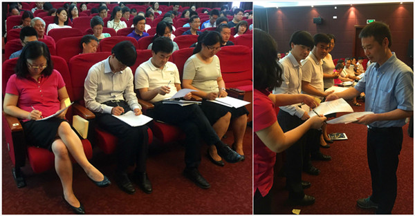 出版社干部签订廉洁从业承诺书 会议上,夏祥伟作了主旨发言。他希望受表彰的出版社优秀共产党员等先进要再接再厉,争取取得更大的成绩,同时号召全社党员和员工要以先进为榜样,求真务实,开拓创新,牢固树立“四个意识”,巩固拓展党的群众路线教育实践活动和“三严三实”专题教育成果,深入开展“两学一做”学习教育,共同为出版社和学校的改革发展做出贡献。他指出,出版社党工委在今年上半年隆重召开了2016年党建工作研讨会、2016年党风廉政建设工作会议,且注重平时在社长办公会、党支部书记例会、工青妇工作会议等有关会议上以及各党支部的活动中认真开展“两学一做”学习教育,取得了阶段性的成效。他强调,制定廉洁风险防控工作的实施办法,签订管理人员廉洁从业承诺书,是为了加强出版社党风廉政建设和反腐败工作,坚持全面从严治党,推进依法依规治企,促进企业健康发展,增强廉洁自律意识,倡导主动接受监督,不断提高反腐倡廉的自觉性和执行力。他提出,今天的大会既是一次弘扬先进和树立标杆的榜样教育,又是一次党课教育和党风廉政教育,也是一次政治理论学习教育,而且还是一次“两学一做”学习教育的主题研讨与交流会,还是一次纪念和庆祝建党95周年的特别生日聚会,因此意义重要、成效明显。此外,他还对推进“两学一做”学习教育、“七一”走访慰问、主题党课、支部变动审批和按期换届、员工政治理论学习、意识形态、新媒体管理、维稳与安全、防汛防台、人身财产安全等工作进行了相关的传达、通报和布置。