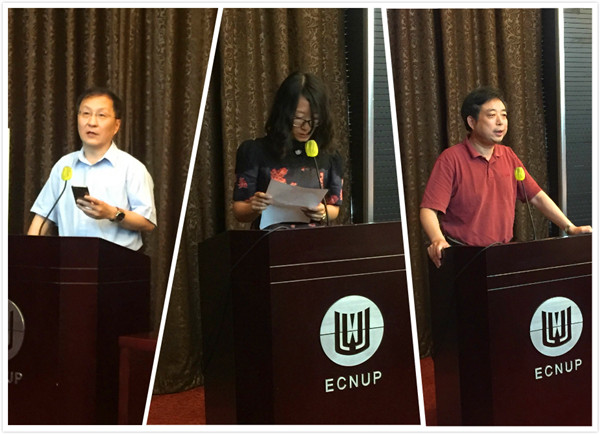 大会现场 会议伊始,出版社往年优秀共产党员代表徐萍宣读了《关于表彰出版社优秀共产党员的决定》,阮光页、袁芳、朱华华、舒刊、李永梅、李慧敏、王丽平等7位同志被评为2016年度出版社优秀共产党员。出版社董事长兼社长王焰、党工委书记夏祥伟向社优秀党员颁发获奖证书。此外,出版社第三党支部荣获华东师范大学先进基层党组织。全体与会人员以热烈的掌声向获奖个人和集体表示真诚的祝贺。夏祥伟还受副校长孙真荣的委托,代表其向出版社全体党员和员工表示节日的慰问和真诚的问候,向获奖个人和集体表示热烈的祝贺。