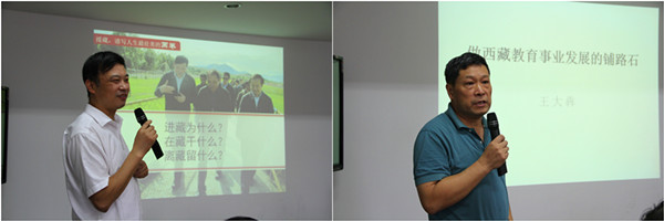 9月14日下午,社会发展学院党委举办“两学一做”系列活动,邀请到王大犇教授与优秀校友孙嘉丰做了题为“西藏——可以大可作为的地方”报告会,与社会发展学院的全体师生党员分享了他们的援藏事迹。学院关工委副主任桂世勋教授、姚南强教授、周玉凤老师应邀出席报告会。 据悉,当年为响应党中央提出的大学生支援建设边疆的号召,华东师范大学人口所王大犇教授于1976年至1988年12年的时间里先后在拉萨市墨竹工卡县公办学校和西藏大学奉献了他的热血青春。他克服了身体、环境、物资和人才匮乏等种种困难,全身投入到西藏的教育事业中。学生有困难他掏出自己的钱帮学生解决学费,学校有困难他积极想办法向华东师大借“教授”,把更好的资源带进西藏,就像王老师的报告主题“做西藏教育事业发展的铺路石”,他为西藏的教育事业的发展做出了自己的贡献。 毕业于华东师范大学人口所、现任浦东新区川沙新镇党委副书记、副镇长的校友孙嘉丰跟王教授一样也有着援藏的经历。作为上海市第七批援藏干部,作为江孜县委书记,他带着“进藏为什么,在藏干什么,离藏留什么”三个问题,克服了高原反应带来的身体不适,吸氧吃药,坚持访遍了江孜县下属的村镇,为援藏工作的开展奠定了基础,明确了重点发展农业和旅游业的发展战略。三年中,他们打造了江孜第一个县级二甲医院 ,在2015年共向9个乡镇的600多户农民提供了100多万株蔬菜种苗人均年增收800元左右,也打造了江孜印象大型舞台剧。他们用自己的行动向我们展示了新时代的援藏干部的智慧和共产党人坚忍不拔的品质。