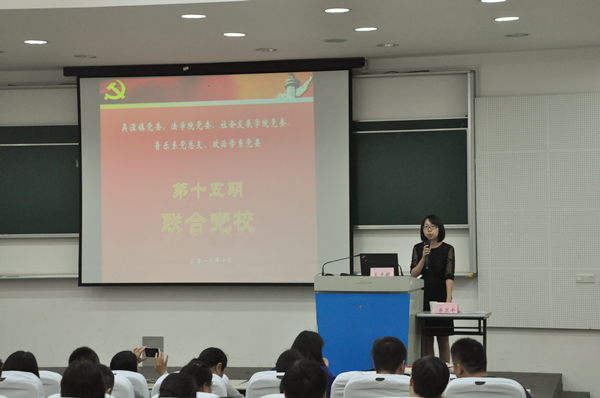 10月19日,由吴泾镇党委、法学院党委、社会发展学院党委、音乐系党总支、政治学系党委联合举办的第十五期党校的开班仪式及第一、二讲在第一教学楼108举行。此次党校特邀政治学系终身教授齐卫平和政治学系党委书记赵正桥为各单位的入党积极分子们授课。 首先,由政治学系党委副书记王子蕲主持开班仪式,她对此次联合党校的总体情况作了一个大致介绍,接着她对所有参加此次党校的学员们寄予了殷切的希望并提出了几点要求,希望学员们认真听取每一次课堂上各位专家老师的教诲,做到学有所思、学有所得、学有所悟。