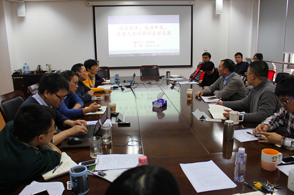 教务处招办联合党支部生活会现场 周傲英首先从12月7-8日习近平总书记在全国高校思想政治工作会议讲话谈起,结合他的国外求学和科研的经历叙述了国家发展带来的民族自信、制度自信和文化自信。他提到习总书记谈思想政治工作是非常接地气的,是从他的亲身经历谈起,高校要充分发挥全员育人、全环节育人的作用,潜移默化地做好人才培养工作。国家在改革开放发展过程中,经历了多元化思想涌入的阶段,经过了调整的环节,现在是到了确立主导思想的阶段了,只有这样,中国才会更有话语权。讲座中提及我校提出的建设世界知名的综合性研究型大学的目标,实现这一目标,不仅要有理念还要有技术支撑,正如互联网的火热发展一样,互联网+是理念,大数据是技术。他鼓励大家作为高校管理人员,要学习互联网的理念,重视用户体验,学会从教师和学生的角度考虑问题,把学生和教师的需求以及潜力都激发出来。在贯彻学校深化改革发展,不应只停留在喊口号,而应积极行动,以身作则。