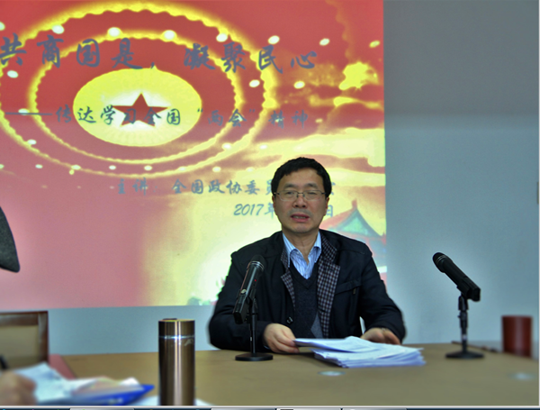 3月15日下午,华东师范大学社会发展学院党委邀请全国政协委员、人口所所长丁金宏教授,在法商北楼525为全院教师及学生党员骨干做“共商国是 凝聚民心——学习传达全国‘两会’精神”主题讲座。讲座由学院党委书记、院长文军主持。
