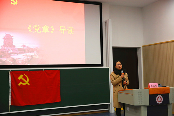 教育学部党委副书记韩春红作开班动员讲话 开班仪式结束后,学校党校常务副校长徐继玲做首场专题报告,对《中国共产党章程》进行解读。