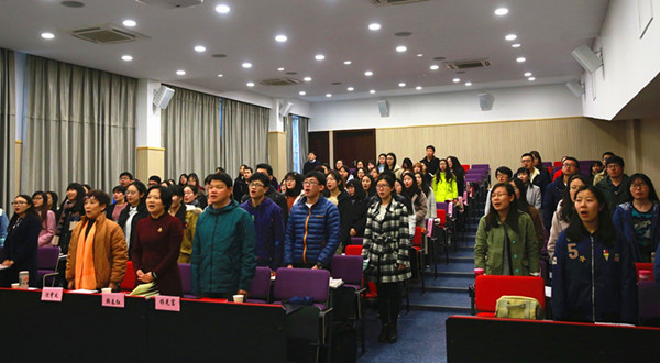 3月22日下午,教育学部党委第三期学生入党积极分子培训班开班仪式在科学会堂阶梯教室顺利进行。出席开班仪式的有教育学部党委副书记韩春红,学生事务部主任杨光富,特聘党建组织员沈霄凤,以及本期培训班近百名学员。仪式由学生事务部学生党建中心指导老师、党校班主任陈媛主持。 开班仪式前,在沈霄凤老师的指挥下,由学员代表、艺术教育部2015级本科生范彦领唱,全体党校学员共同学唱《国际歌》。偌大的教室中,学员们一遍遍重温这首经典的共产主义之歌。慷慨激昂的氛围,令在场每一位学员深受震撼。