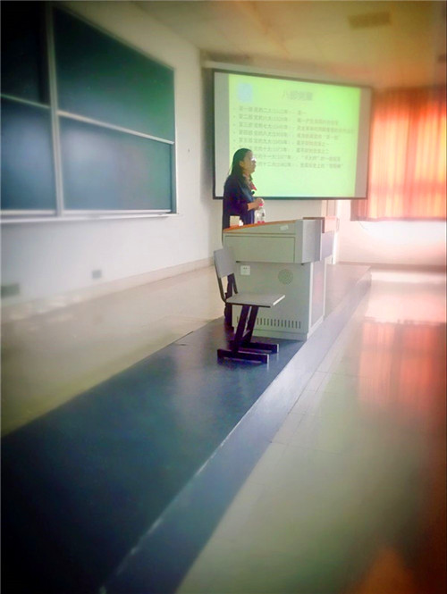 学生党工委书记余佳作“学党章、学讲话,做合格党员”主题报告 余佳老师强调,学党章不仅指认真学习《中国共产党章程》,还包括学习《中国共产党廉洁自律准则》、《中国共产党纪律处分条例》等党内法规,而学讲话也是指学习系列讲话。并希望学员们通过本次“两学一做”学习教育,谨记“先公后私”,做一个“优雅的人”,把入党作为一件严肃的事情。 徐继玲老师的讲座则以“党章导读”为主题。徐老师首先就我校党员的发展情况进行了概述,并对党章的修订规定做了详细介绍。随后,以党的历次代表大会为线,分析了历次党代会中的党章内容变化情况,讲述了党章产生变化的历史背景,对每一部党章的特性和新修订的内容做了重点讲解。徐继玲老师最后从文本、结构、产生程序等方面重点分析了党的十八大中所修订的党章内容。