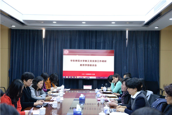 教育学部基层党组织建设调研专题会举行 4月13日下午,校党委副书记、纪委书记杨昌利一行到教育学部调研基层党组织建设,与一线教工党支部书记一起探讨如何加强基层党建工作。调研组成员还包括党委组织部部长程静,党校常务副校长徐继玲,组织部专职组织员李海芬,城市与区域科学学院党委副书记沈晔,生命科学学院辅导员崔勇勇。教育学部党委书记汪海萍,学部主任袁振国,党委副书记万明霞、韩春红及学部党委委员、教工党支部书记代表参加调研。会议由组织部部长程静主持。 汪海萍结合教育学部成立以来党建工作面临的新形势、新变化和新问题,从严肃党内政治生活、提升基层党支部组织生活质量和围绕中心工作抓党建等三个方面汇报了教育学部党委在基层党组织建设中的具体做法。