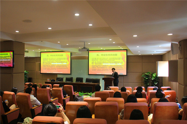 2017年5月15日中午,经管书院党委在闵行校区法商南楼516报告厅开展2017届毕业生党员离校教育。经管书院党委书记高向东、党委副书记董盈盈出席,经管书院2017届毕业生党员近90人参加学习,经管书院党建办公室主任陈夏阳主持。