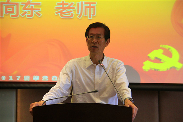 经管书院党委书记高向东致辞 一是毕业生党员要以身示范,加强思想道德标准,以党员标准要求自己,要心怀感激,感激亲人、母校、社会,要做政治素质过硬、道德品质优秀、综合素质突出的时代青年,把个人聪明才智融入到为人民服务的光荣之中,实现人生价值。 二是要关注母校,践行爱校荣校的光荣传统。每一位毕业生党员都是学校建设的参与者与创造者。他指出,高校有四个主要任务,即教学、科研、社会服务和文化传承,而高校的办学根本目的就是人才培养。大学是人生最美好的岁月,他希望各位毕业生党员今后继续刻苦努力,把自己的学业、知识运用到工作中。 三是要爱岗敬业,具有事业心、责任感。毕业党员即将走向工作岗位、进入社会这个更大的课堂,要保持踏踏实实的作风,兢兢业业的工作作风,勤于学习、善于创造、甘于奉献的生活态度。他表示本科生党员是大学生中的佼佼者,因此更要在科学研究领域发挥生力军的作用,以创新推动文化创意产业的发展,在各自岗位上扎实工作,干一行、爱一行、精一行,为实现自己理想而奋斗;要做中华民族传统美德继承者,做探索真理、勇于创新的开拓者,并以此报答父母、回馈母校。 致辞的最后,高向东深情说道:“今天你们以师大为荣,明天师大以你们为荣”。