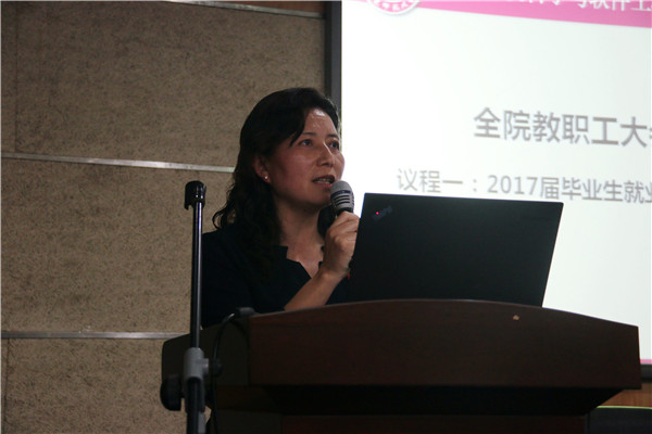 学院党委书记李恺主持大会 院党委书记李恺、常务副院长王长波、副书记兼副院长洪燕、副院长王晓玲、副院长姜宁康、副院长蒲戈光出席,李恺书记主持大会。副书记兼副院长洪燕通报了就业进展情况,对学院就业去向分布做了分析,受金融等外部行业影响今年的毕业生就业形势异常严峻,各方都在尽力拓展就业渠道,发掘可能的资源,争取更多的就业机会,但过程中也需要学生们不断自我调整端正态度,顺利做好毕业期间的各项工作。