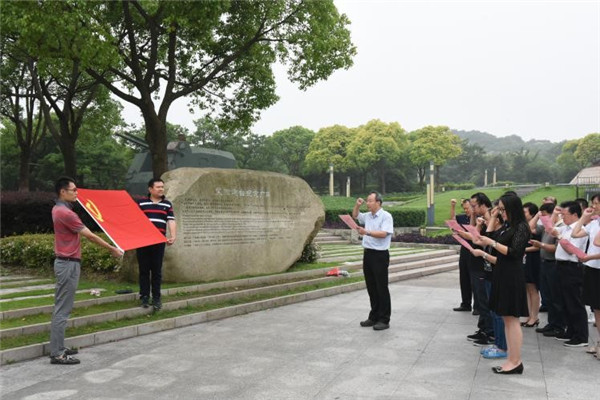 产业党工委一行赴吴淞炮台湾爱国主义教育基地参观 吴淞炮台湾爱国主义教育基地位于上海市宝山区,东濒长江,西倚炮台山,本是一片长江滩涂湿地,后经废钢渣陆续回填改建而来。曾为昔日的军事要塞,经历过硝烟弥漫,是鸦片战争、淞沪抗战以及解放上海吴淞战役的著名战场。 在吴淞炮台纪念广场,由产业党工委书记金之诚带领,全体党员高举右手,面对鲜红的党旗,庄严宣誓“我志愿加入中国共产党,拥护党的纲领,遵守党的章程……”党员同志们重温入党誓词,在党旗下接受心灵的净化和洗礼,牢记共产党员的政治责任和历史使命,以更加饱满的热情投身各自的学习和工作,切实发挥共产党员的先锋模范作用,永葆共产党员的政治本色。