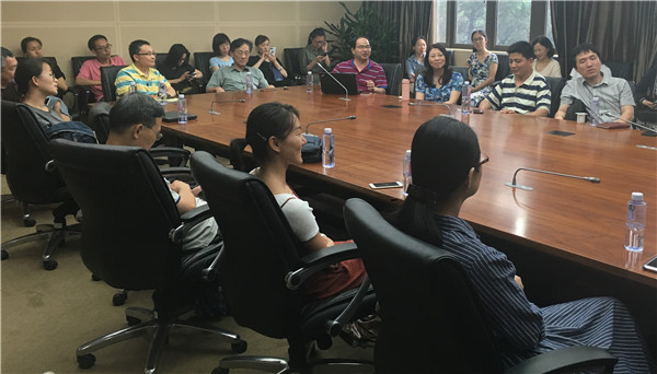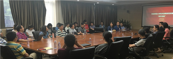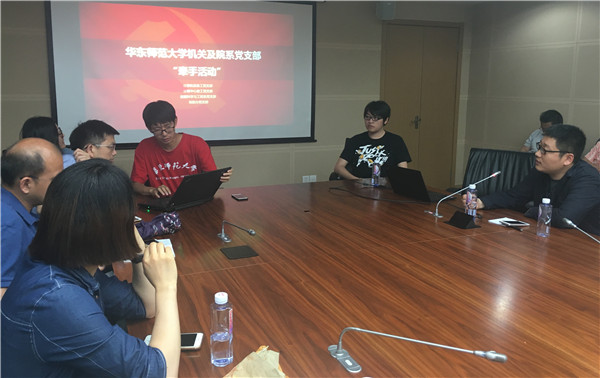 华东师范大学以加强机关职能部门和院系部门之间互动和了解为宗旨而开展的机关支部与院系教工支部一起过组织生活的“牵手”专项活动已进行了多年,取得了显著的成效。2017年6月21日下午,计算机科学与软件工程学院的计算机科学技术系、计算中心、数据科学与工程系三个教工党支部与信息办党支部在中山北路校区图书馆C203会议室,一起举行支部“牵手”活动,四个支部的党员共同参与了此次活动。