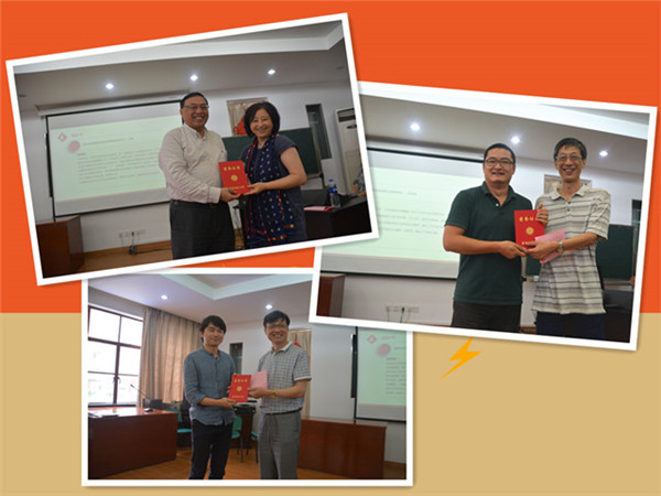 向获奖代表颁奖 为进一步推进“两学一做”学习教育常态化制度化,增强党员参与学习教育的责任感与使命感,弘扬正气、创先争优。学院党委研究决定,对刘承峰、吴勇毅、吴晓隆3名优秀共产党员进行表彰。会上,黄薇宣读了表彰决定,三位同志所在党支部的支部书记张德劭、王琦、张建民分别致颁奖词并为获奖个人颁发荣誉证书。受表彰的党员表示将不忘初心,继续进取,勇当教书育人排头兵,敢为教育创新先行者,进一步推进汉语国际教育事业的不断发展。