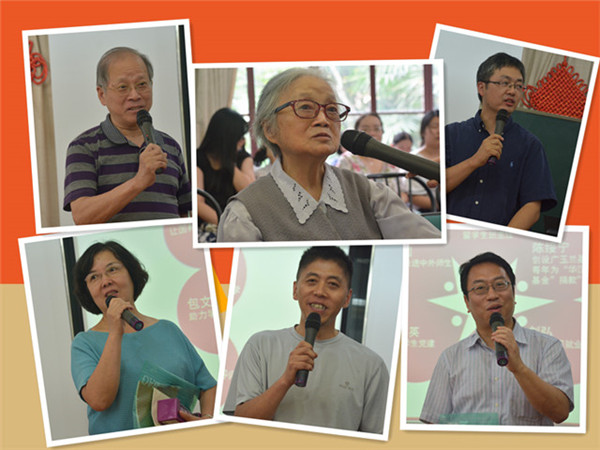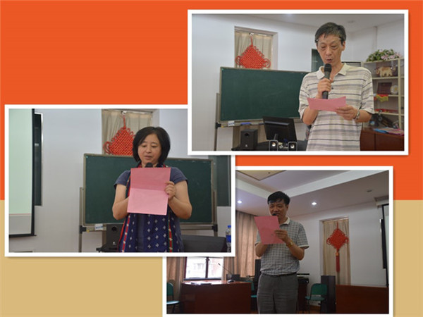 支部书记致颁奖词 在去年召开全国高校思想政治工作会议上习近平总书记指出,高校教师要做学生健康成长的指导者和引路人,要做到教书与育人相结合、言传与身教相结合、潜心问道与关心社会相结合、学术自由与学术规范相结合,实现全员、全过程、全方位育人。近年来,对外汉语学院也涌现出了一批关心学生成长、积极践行“立德树人”使命的好教师和好党员。在活动中,学院学生工作团队以一种特别的方式向这些优秀的党员教师致敬,向大家讲述了他们为学生默默付出,不计回报的点滴故事。 退休党员教师老当益壮:入党六十年的陈绥宁教授创设广玉兰基金,校终身教授潘文国让国粹走进中外师生,老教工支部书记包文英助力学生党建;在职党员教师备受学生爱戴,如学生心目中“永远的男神”李宏祥、实习就业领域的“外汉好导师”刘弘以及留学生眼中的“周爸爸”优秀班主任周子衡。娓娓道来的故事中都饱含着一颗颗“立德树人、教书育人、爱岗敬业、无私奉献”的赤子之心,在场的每一个人无不为之感动和振奋,重温入党初心,激励榜样力量。