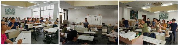 教育学部艺术教育部武千嶂展示中国书法意蕴 本次两部分活动分别由学报编辑部党支部李万会和艺教高职联合党支部徐韵主持,教育学部机关第二党支部肖玉敏作了总结发言。肖老师在总结中指出,杨九诠老师的精彩报告和武千嶂老师指导的书法体验活动,一静一动、一慢一快,有内涵、有趣味,既有学术性又有艺术性,给党员同志们留下的是深刻美好的体验,期待以后有更多的牵手活动。