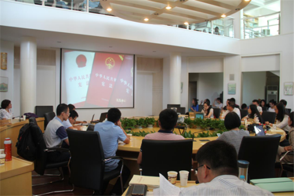 党支部牵手,共建共享。近日,大型政论专题系列片《法治中国》在央视综合频道播出,对法学院师生来说,是非常好的生动教材。法学院为全体师生党员购买《习近平关于全面依法治国论述摘编》,提供“法治中国”政论片链接,要求党员个人自学,并撰写学习心得体会。在自学基础上9月13日召开大型政论专题片“法治中国”学习分享会,学院领导班子带头学习,教职工党支部和学生党支部共建,师生党员一起,入党积极分子参与,共同交流学习体会,深化对习近平总书记关于全面依法治国思想的认识,结合党员的学术方向,谈体会,重点学,真正发挥马克思主义理论对法学教学和科研的引领作用。