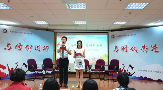9月12日下午14:00,“与信仰同行,与时代共进”教育学部2017级新生党员主题教育活动在艺体楼302会场隆重举行。教育学部218名新生党员佩戴党员徽章,共同度过在师大的第一次集体组织生活。 教育学部党委书记汪海萍,党委副书记万明霞、沈晔,教师教育学院党总支副书记蒋瑾,教育信息技术系主任顾小清教授、课程与教学研究所副所长杨向东教授、国际事务部主任杨福义副教授、教育学系董轩副教授、教师教育学院丁伟副教授等各系所学科带头人、青年教师代表,特邀党建组织员沈霄凤,学生事务部副主任柳叶,学生党建中心指导老师陈媛等近20位教师党员出席活动。高教所2016级硕士生党员周星、课程与教学系2016级硕士生党员马志强担任主持。