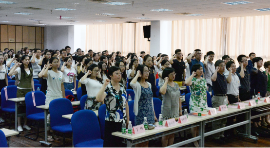 集体重温誓言 随着雄壮的《国际歌》奏响,教育学部2017级新生党员主题教育活动落下帷幕。会后,参与活动的青年教师代表,今年刚刚入选“上海市浦江人才计划”的教育学系教工党支部副书记董轩副教授认为:“学部此次新生党员教育工作做得很到位,可以有效地发挥教师党员对于学生党员的传帮带作用。” 通过亮身份、树形象,增强党员党性意识和责任意识;通过亮行动、作表率,发挥教师党员思想引领和行为示范作用。教育学部2017年新生党员教育工作,不仅为学部新老党员提供了全方位的党性教育机会,更有效地将日常党建工作将师生思想政治教育工作有机结合,密切了师生关系,促进了师生的共同成长,有力推进了“全员、全过程、全方位”育人理念和机制的凝聚、构建与完善。 据悉,9月25日,教育学部党委将举办“支书共话•师生党支部书记专题组织生活”,搭建师生党支部交流合作平台,致力提升基层党支部建设质量和师生党员教育实效,共同促进师生党员先锋模范作用的发挥,探索师生思想政治教育工作的提升路径。