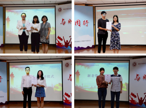 先进党支部建设经验谈 教育学部2017年先进学生党支部,教育学系2016级研究生党支部书记阴崔雪在分享中,将支部特点归纳为“一、二、三、四、五”五个方面,分别是一个核心、两个特征、三种精神、四支团队、五项课题。在组织生活中彰显特色,在党务管理中保持细致,在志愿活动中体现奉献。正是在这样的指导思想下,该支部积极开拓基层组织建设的新思路,在研究生群体中很好地发挥了组织凝聚力与影响力。 【强引领:新老党支部结对】 为更好地推进新生党支部建设,发挥高年级支部的传帮带作用,学部党委特设新老党支部牵手计划,组织新生党支部与高年级学生党支部结对。活动现场,教育学系、教育信息技术学系、职业与成人教育研究所、教师教育学院的2016级与2017级研究生党支部代表进行了简单而隆重的新老党支部结对仪式。四组结对支部依次上台,从教育学部党委副书记万明霞老师手中接过学部党委颁发的结对书。为期一年的结对时间,将谱写支部建设的新篇章。