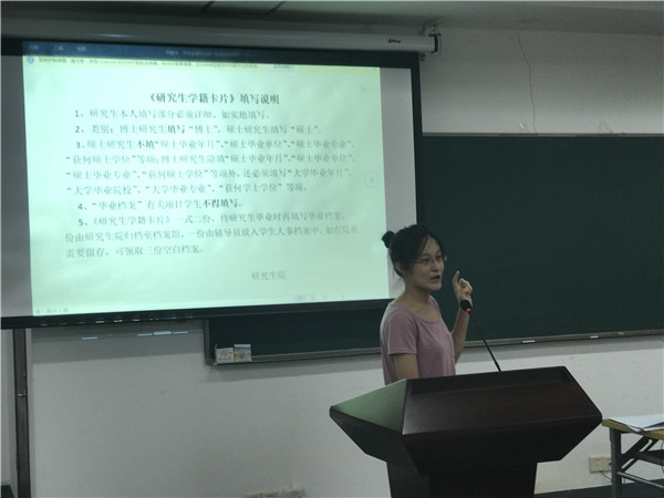 9月12日,法德俄语系教工党支部徐岚、余茜和刘玉琴三位老师、日语西班牙语专业联合教工党支部的金晶老师及英语系翻译系教工党支部的全建强老师分别对各专业的研究生新生进行了系史教育,让新生们了解学院历史、系史,专业成长的历程、老教师的风采、历史时刻的重温让新生增强了对专业的归属感,增强了他们在专业上攻坚克难的决心。 外语学院教工党员在新生入学教育的各个环节亮出党员身份、立起先进标尺、树立先锋形象,成为“求实创造、为人师表”的践行者,力求带动学生积极投身学校改革发展事业。