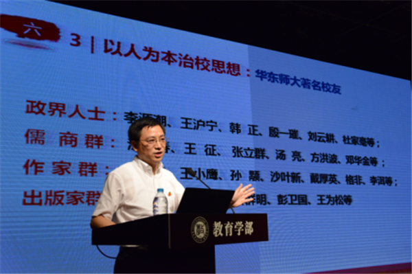 讲座现场 讲座共分“华东师大的三大前身”、“始终保持高水平的国家重点大学”、“以教师教育为优势的研究型大学”、“以培育全人为目标的综合性大学”、“扎根中国大地的国际化学府”、“办学理念与著名校友”六大章节,全面介绍了华东师大建校以来在教学科研、人才培养、学科建设、国际化进程等多方面的发展。一个多小时的讲座,让新生们切身体会到了师大深厚的人文底蕴。新生们纷纷表示,能够成为一名真正的师大人令他们倍感骄傲和自豪,而更重要的是,他们将怀着新的历史使命与期待,加入到创造师大更加美好的未来的行列中。