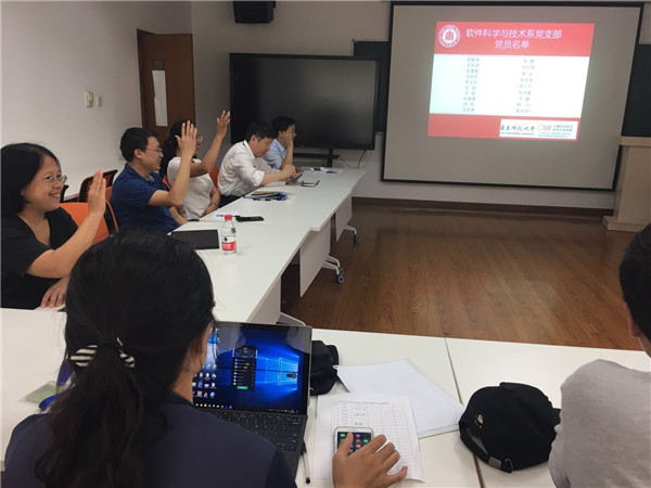 近期,计算机科学与软件工程学院软件科学与技术系的全体党员老师在理科大楼B1002召开支部组织生活会议,支部书记彭超主持了会议。本次组织生活的主要议题是讨论本学期的支部学习安排及学校十三次党代会代表选举相关工作。