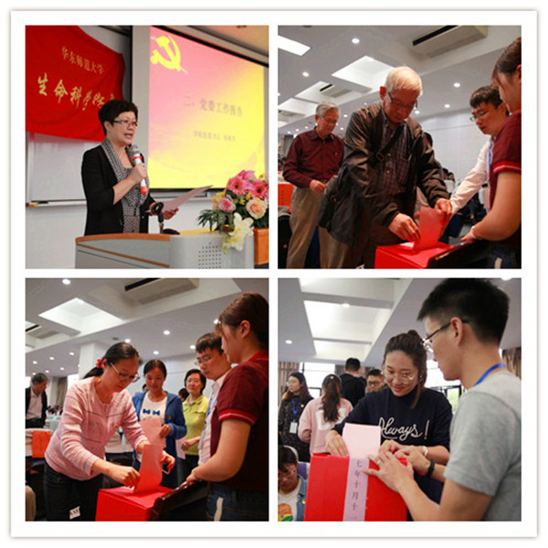 报告结束后,与会师生党员审议并通过了大会选举办法,宣布了总监票人、监票人、计票人以及新一届党委委员候选人名单。经过充分酝酿,大会严格按照《中国共产党章程》和《中国共产党基层组织选举工作条例》的有关规定,全体正式党员行使民主权利进行了无记名投票的差额选举。经过统计并公布得票情况,大会选举产生了新一届生命科学学院党委委员。