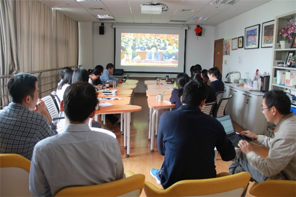 10月18日上午9时,中国共产党第十九次全国代表大会在北京隆重开幕。研究生院党支部召集支部党员和群众二十余人齐聚院里的沙龙会议室共同收看党的十九大开幕会的直播盛况。 在聆听习近平总书记代表十八届中央委员会向大会作报告的过程中,与会人员认真专注,在听到全新的表述、精妙的论断,都详细地记录下来,并进行了热烈的讨论,分享感受:中国特色社会主义进入新时代、中国社会主义矛盾发生新变化、学校进入“双一流”高校建设之列、研究生教育进入转型发展。作为一名普通党员,大家喜悦兴奋之余展开思考,更感受到压力和挑战。