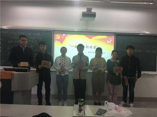 为贯彻党员阅读素养提升计划,近期数学系2016级硕士党支部在闵行校区三教举行了“一起来做朗读者”竞赛活动。 开始前,每位党员以个人或小组形式认真准备要推荐的图书,并不断练习朗诵,以期达到最佳状态。活动过程中,各位党员深情饱满,慷慨激昂,用流畅的语言,以朗读的方式诠释“青春—成长”这一主题的。其中不乏许多经典书目,种类多样,有脍炙人口的长篇小说《追风筝的人》、《偷影子的人》,有青春文学作品《你好,旧时光》、《青春》、《小王子》,还有励志书籍《遇见未知的自己》、《做最好的自己》、《向着光亮那方》等等。遇到与自己有共同兴趣爱好的书友或喜欢的书籍,场下不时传来阵阵掌声。最后通过不记名投票,选出了本次活动的优胜者。