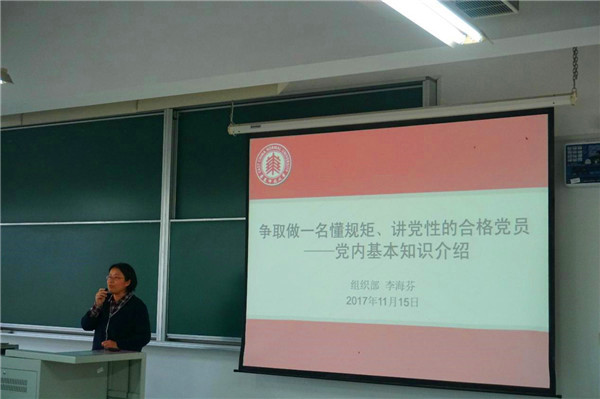 李海芬老师为联合党校学员授课 此次联合党校系列培训活动,既学习贯彻党的十九大精神,又关注到发展党员的基本问题,在注重思想引领的同时又侧重于实践性学习。有助于学员进一步坚定理想信念,提高自身政治素养,做到不忘初心、牢记使命,有奉献、有作为。
