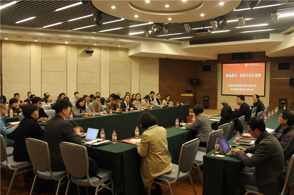 11月15日下午,发展规划部与高等教育研究所党支部联合组织生活专题会在中北校区逸夫楼三楼报告厅举行,会议主题为“开启美好征程,共话使命担当——‘双一流’建设研讨会”。会议由高等教育研究所党支部书记李梅同志主持。教育学部书记汪海萍、机关党工委书记王淑仙、党校副校长兼高级研修院副院长张俊华出席会议,学校基层支部书记培训班党员进行了现场观摩。