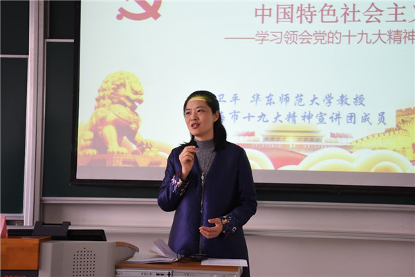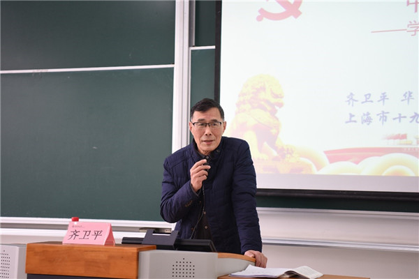 11月22日下午,生态与环境科学学院教工党支部邀请学校政治学系终身教授、博士生导师、上海市十九大精神宣讲团成员齐卫平老师为学院党员教师及部分学生党员作“新时代坚持和发展中国特色社会主义——学习领会党的十九大精神”专题报告。学院党委书记刘婕、副书记路葵参加本次活动。活动由党委书记刘婕老师主持。