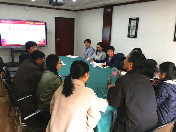 “不忘初心 牢记使命”党委扩大会现场 肖路等教职工党支部书记相继发言,分享了“组团式”参加学校党校“2017年教职工党支部书记示范培训班”的心得体会。在学校建设“双一流”大学的背景下,如何做好基层党支部工作;在学生党员培养和发展的过程中,如何进一步深化认识,切实做到高标准和严要求;积极有效地工作如何吸引更多优秀的青年教师加入党组织;坚定并传递理想信念的力量,如何创新基层党建等等,是大家共同思考和探讨的问题。 两位与会辅导员汇报了参加学校“辅导员骨干学习贯彻党的十九大精神专题研修班”的所思所得。本科生辅导员刘瞳讲到:一是要将十九大报告与思政工作相结合,深入推动党的十九大精神融入教学全过程;二是借鉴“用故事讲道理”的育人模式,将育人的工作渗透到学生学习生活的方方面面。研究生辅导员王佳宁向大家介绍了为期一天的外出调研,包括瞻仰嘉兴南湖红船以及赴中国美术学院和浙江大学与两校学工部进行工作实务交流等。王佳宁谈到,参观过程中被“敢为人先,求真务实,勇于创新”的精神所打动,要结合自身工作,努力做好辅导员“三育人”实践。