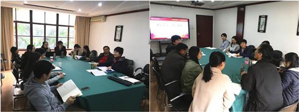 与会人员围绕主题展开交流 汉语言系教工党支部书记肖路、汉语国际教育系教工党支部书记张德劭、汉语文化教学中心教工党支部书记王琦、汉语国际教师研修基地教工党支部支委李艳飒先后发言,分享了“组团式”参加学校党校“2017年教职工党支部书记示范培训班”的心得体会。通过辅导报告、现场教学、主题研讨等多样化的学习,大家进一步加深了对十九大精神及《党章》的领悟,增强了提升自身理论素养、业务水平和工作能力的紧迫感。在学校建设“双一流”大学的背景下,如何做好基层党支部工作;在学生党员培养和发展的过程中,如何进一步深化认识,切实做到高标准和严要求;积极有效地工作如何吸引更多优秀的青年教师加入党组织;坚定并传递理想信念的力量,如何创新基层党建等等,是大家共同思考和探讨的问题。 两位参加辅导员汇报了参加学校“辅导员骨干学习贯彻党的十九大精神专题研修班”的所思所得。本科生辅导员刘瞳首先介绍了研修班专题讲座、案例教学以及外出调研等多元化的课程安排,重点谈到了关于两个讲座的学习心得。一是要将十九大报告与思政工作相结合,深入推动党的十九大精神融入教学全过程;二是借鉴“用故事讲道理”的育人模式,将育人的工作渗透到学生学习生活的方方面面。研究生辅导员王佳宁向党员们介绍了为期一天的外出调研,包括瞻仰嘉兴南湖红船,参观南湖革命纪念馆以及赴中国美术学院和浙江大学与两校学工部进行工作实务交流等。王佳宁谈到,参观后被浙江“敢为人先,求真务实,勇于创新”的精神所感动,要结合自身工作,努力做好辅导员“三育人”实践。