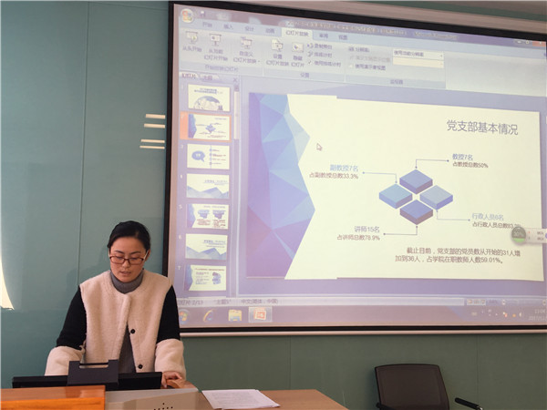 社会发展学院支部书记述职报告会现场 熊琼首先向在场师生党员介绍了书记述职的重要意义并要求各支部书记总结成绩要实事求是,查找问题要见人见事见思想,整改措施要具体可行。 接着,各支部书记通过举实例、列数据表格、图文等方式,围绕2017年各党支部工作开展情况,就发挥政治引领作用情况、规范党的组织生活情况、团结凝聚师生群众情况、促进学校中心工作情况进行了深入、全面、客观的自我剖析,并有针对性地提出了下一步工作思路和举措,提出了比如加强支部书记思想政治学习提升政治引领作用;突出支部的特色和亮点,通过党的活动提升学院服务社会的水平;组织师生党员在党的重大的研究领域发文发声;改善党支部活动的方式和方法,通过线上和线下相结合的方式开展丰富多彩的组织生活,提高参与率,增强支部凝聚力等切实有效的举措。