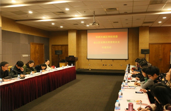 师生参观金山卫科创园和金山新跃物流汇公司 13日下午学院师生与金山区发改委就“以党建为引领,以学院学科优势为依托,助力金山未来生产-生态-生活空间融合发展”等议题进行了互动交流。双方依据党的十九大会议精神,重点就杭州湾北岸先进制造业基地建设、张江长三角科技城发展、金山融入长三角城市群、金山区制造业的创新生态优化、促进新型工业化与城镇化、加快环保服务业等内容进行了热烈的探讨。