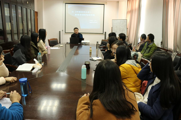 习近平总书记在党的十九大报告中指出,没有高度的文化自信,没有文化的繁荣兴盛,就没有中华民族伟大复兴。为了深入贯彻党的十九大精神,增强古籍研究所的文化自信,激发爱国热情,12月20日下午13点30分,古籍研究所党总支邀请了思勉人文高研院副院长、古籍所研究员方笑一老师,在人文楼4349会议室为古籍研究所的全体党员开展了题为《中国诗词大会——看古诗词的电视传播》的讲座报告。讲座由古籍所党总支书记施家仓主持。