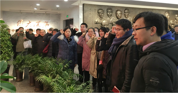 党员同志们观看革命文物 “我志愿加入中国共产党,拥护党的纲领,遵守党的章程,履行党员义务,执行党的决定,严守党的纪律,保守党的秘密,对党忠诚,积极工作,为共产主义奋斗终身,随时准备为党和人民牺牲一切,永不叛党。”在中共一大会址纪念馆内,全体党员在党委书记张惠虹的带领下再次庄严宣誓,并承诺不忘初心,牢记使命。