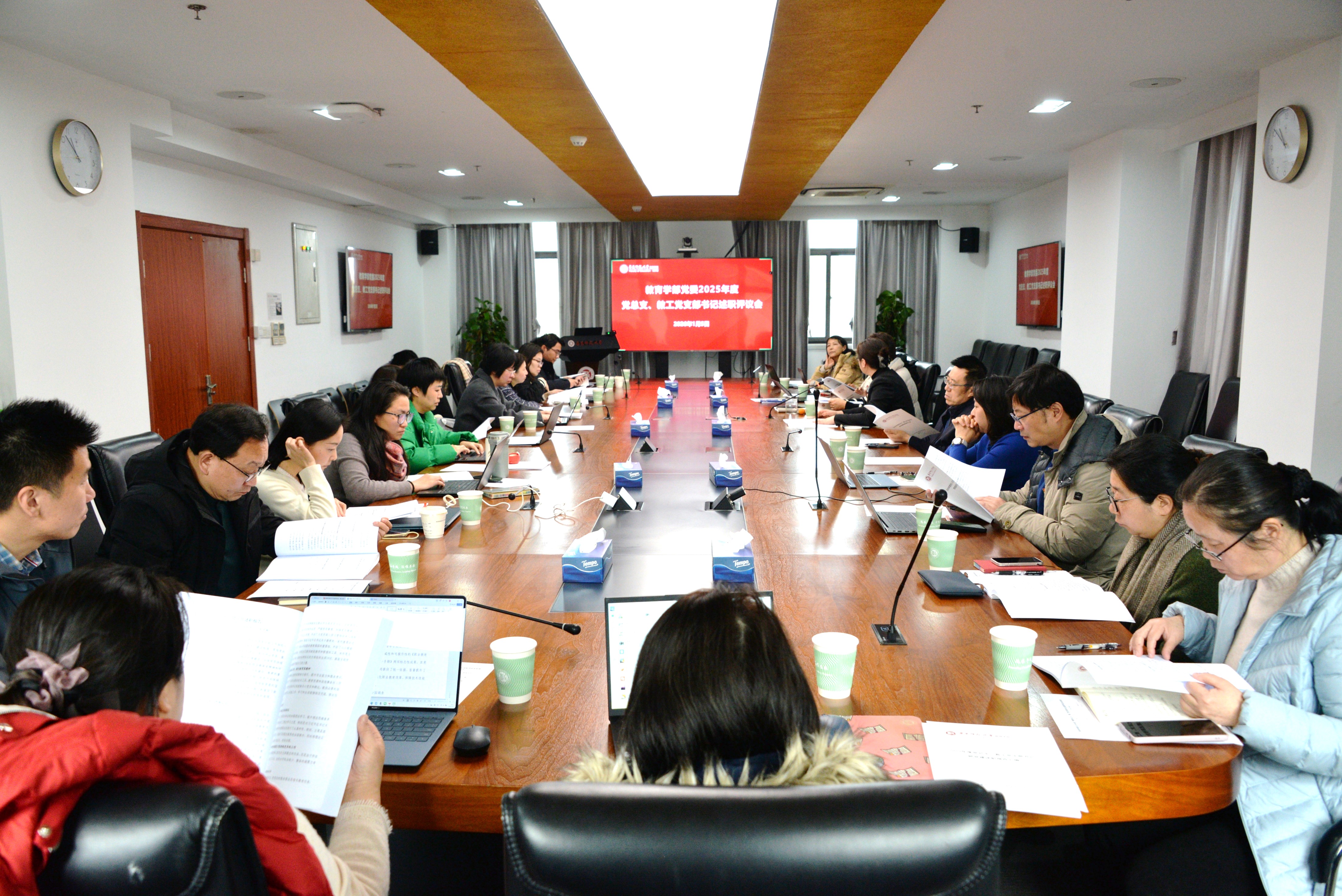 朱文佳在总结时表示,各支部要持续强化政治引领,将“七个有力”标准贯穿于工作全过程,切实增强党组织的凝聚力和战斗力。面向“十五五”时期学院发展大局和2026年工作展望,一是深打破惯性思维,系统开展谋划,创新支部建设内涵形式;二是聚焦中心工作,应对挑战机遇,明确支部建设道路方向;三是找准战略定位,形成重点突破,形成支部建设成果成效。 新闻链接:https://comm.ecnu.edu.cn/4a/1f/c41509a739871/page.htm 教育学部党委 2026年1月5日上午,华东师范大学教育学部党委召开2025年度下辖党总支、教工党支部书记述职评议会。教育学部党委委员、党总支和教工党支部书记、专职组织员27人参加会议。会议由教育学部党委书记闫露主持。按照学部党委书面述职和现场述职相结合、现场述职3年内全覆盖的述职评议考核方式,7位党总支、教工党支部书记先后进行现场述职,5位学部党委委员对述职书记作分工点评。