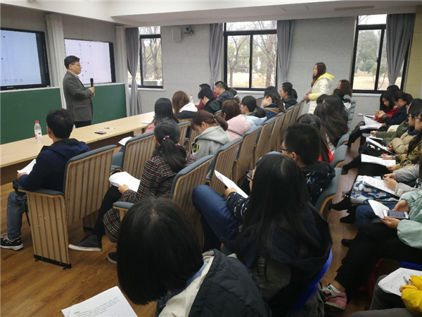 李驰宇老师回答学生们的提问 据悉,此次活动将持续一月。在示范课展示之后,将分不同专题,由学生们分组准备课件、教案、试讲,再进行现场讲课一对一接受中学数学名师和专家点评,真正达到帮助学生提高教学技能的目的。