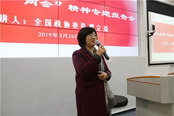 为深入学习贯彻全国“两会”精神,3月26日下午,教师教育学院在中北校区文附楼118室举办学习十三届全国人大二次会议和全国政协十三届二次会议精神辅导报告会。全国政协委员,民进十四届中央委员、民进上海市委副主委,学校副校长戴立益应邀作专题报告。教师教育学院和开放教育学院百余名师生出席会议。教师教育学院党总支书记万明霞主持会议。