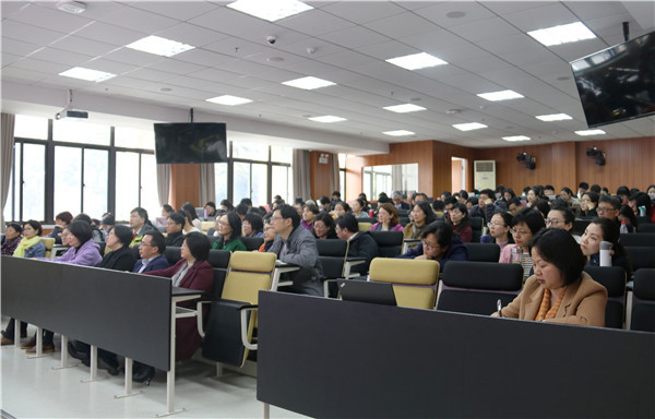 教师教育学院党总支书记万明霞主持会议 会上,戴立益委员重点传达了习近平总书记的重要讲话、政协常委会工作报告、提案工作情况报告、政府工作报告等主要内容。其中,戴立益委员指出今年政府工作报告中教育不仅仅是民生部分的内容,同时还体现在文化、卫生、就业、脱贫等各个方面,贯穿了整个政府工作报告。他强调,政府工作报告当中对于教育发展提出的相应目标:发展更加公平更有质量的教育,推进城乡义务教育一体化发现,加快改善乡村学校办学条件,抓紧城镇学校“大班额”问题,保障进城务工人员随迁子女,发展“互联网+教育”,促进优质资源共享,充分体现了教育是国之根本,党之根本。 戴立益委员还分享自己所做的“发挥地方政府主导作用推进学前教育”“巩固青少年思想政治教育阵地培养社会主义事业合格建设者和接班人”“高校本土人才使用和评价”“大学生阅读能力的提升”“大幅提升有研究生学历的中学教师数量”等五个提案以及在联组会议上的主题发言内容。 最后,万明霞代表学院对戴立益委员精彩的报告表示感谢。她表示,戴立益委员的报告重点突出、内容丰富、数据详实,让在场师生对“两会”精神和我国当前经济社会发展形势,特别是教育发展目标和任务有了更深入的理解和思考。在下一阶段的工作中,全体师生要结合自身教学、科硏、管理和专业学习实际,将中央部署、学校发展有机结合,凝心聚力,改革创新,用“两会”精神扎实推进“双一流”建设,实现新时代学校事业新发展。