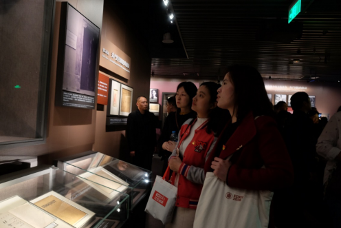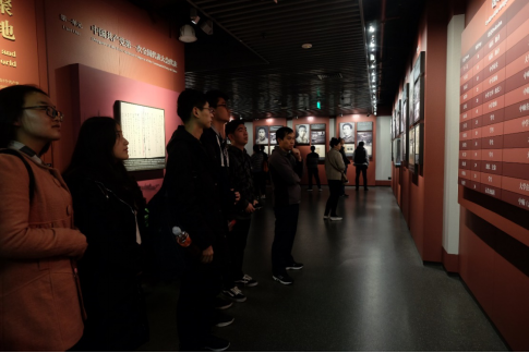 学生预备党员进行入党宣誓 学院师生瞻仰了中共一大会址的基本陈列,在观展中追寻先辈足迹,重温建党历程。中国共产党艰苦卓绝的奋斗历程激励了所有师生,参观学生表示要传承革命先辈的红色精神,不忘初心,牢记使命,将理想信念化为学习的动力,立志科技报国。
