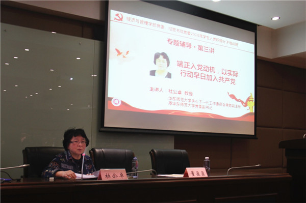 经济与管理学部党委、经管书院党委2018年学生入党积极分子培训班(经管第3期党校)通过多层次、多角度的方式开展党性教育,探索多元化党员培养模式,统筹运用“专题辅导讲座、参观学习、交流汇报”等方式,聚焦热点话题,使理论教学真正做到了与时俱进。 专题辅导:聚焦入党动机与责任担当 不忘初心,牢记使命是习近平总书记在党的十九大报告中对全体党员提出的首要要求。对于学生党员来说,“为什么入党”和“要做一名怎样的共产党员”即是初心所在。经管3期党校以“入党动机”和“责任担当”为切入点,于4月18日举行专题辅导。 学校关工委常务副主任、原学校党委副书记杜公卓为学员们作“端正入党动机,以实际行动早日加入共产党”主题辅导报告。她以“为什么要强调端正入党动机?”和“怎样以实际行动早日加入共产党?”两个问题为核心展开。党校副校长、高级研修学院副院长张俊华以“理想、信仰、责任”为主题向学员们作第四讲专题辅导。他结合自身的经历强调了今天“理想”、“信仰”、“责任”对于个人的重要性,并解释了三个词的涵义。