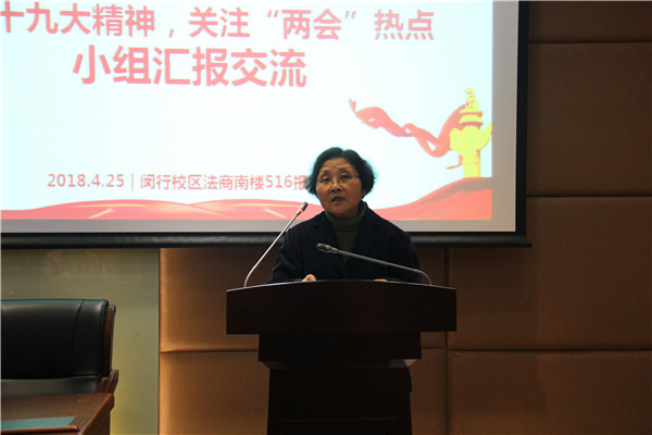 4月25日下午,经济与管理学部党委、经管书院党委2018年学生入党积极分子培训班(经管3期党校)在闵行校区法商南楼516报告厅举行“学习十九大精神,关注‘两会’热点”小组汇报交流。经济与管理学部关工委委员陈承明教授、孙厚琴副教授,经管书院信息宣传办公室主任刘骏、学业指导办公室主任李卓航、社区发展办公室主任杨丹妮、党建办公室副主任王旭担任评委,活动由党建办公室主任陈夏阳主持。