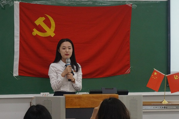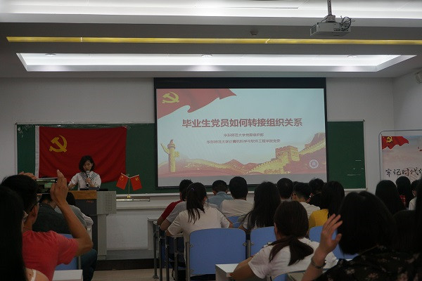 入党积极分子朗读大夏大学迁校碑文 活动中,组织党员们集体观看全国优秀党员、何积丰院士的《大师情怀》视频,希望党员们能够学习何积丰院士不畏困难、艰苦奋斗的精神。最后,学院学生党建指导老师刘国艳为毕业生党员们讲解党组织关系的转接流程。