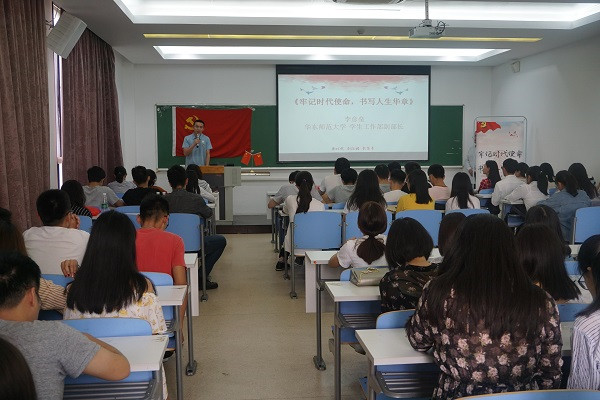 为教育引导毕业生党员尊崇党章、遵守党规,用十九大精神统一思想行动,不忘初心、牢记使命,践行“四讲四有”,计算机科学与软件工程学院党委以“牢记时代使命,书写人生华章”为主题开展了毕业生党员离校教育活动,鼓励毕业生党员能在新的人生阶段“不忘初心延续不懈征程,创先争优牢记党员使命”。 6月4日下午,2018级毕业生党员离校教育活动在地理馆201室正式举行,活动由14级本科毕业生党员宋博文同学主持。学院党委书记李恺、党委副书记兼副院长曹桂涛、校学生工作部副部长李彦垒和学院辅导员等出席了本次活动。 勿忘初心:牢记时代使命,勿忘党员身份,弘扬远大志向 学院党委书记李恺首先致辞,表达了对毕业生党员同学们的殷切期盼和真挚祝福。李恺要求毕业生党员在今后的生活中能够不忘党员初心,牢记时代使命,坚定自我理想信念,敢于立下鸿鹄之志,做中华民族伟大精神的继承者和中华民族跃进新时代的开拓者。李恺还带领全体毕业生党员同学重温入党誓言,在庄严的党旗下郑重宣誓“······为共产主义奋斗终身,永不叛党。”