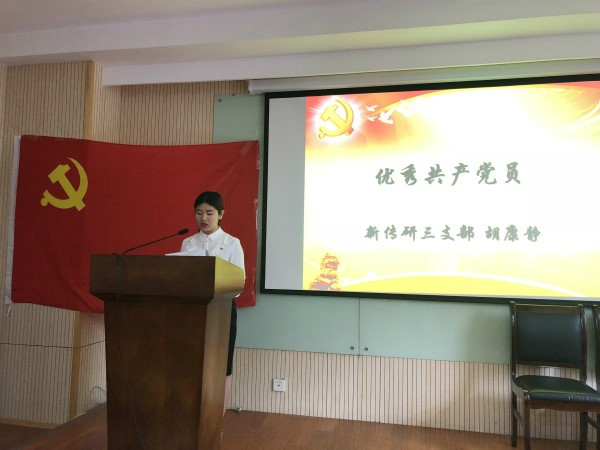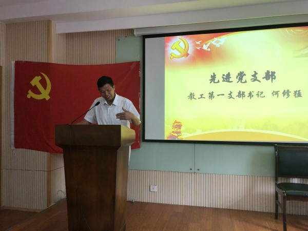 为优秀共产党员颁奖 新闻与传播第一党支部胡康静同志和教工第一支部书记何修猛同志分别作为优秀党员代表和先进党支部代表发言。